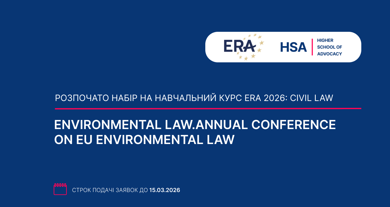 Розпочато набір на навчальний курс ERA 2026: Environmental Law.Annual Conference on EU Environmental Law