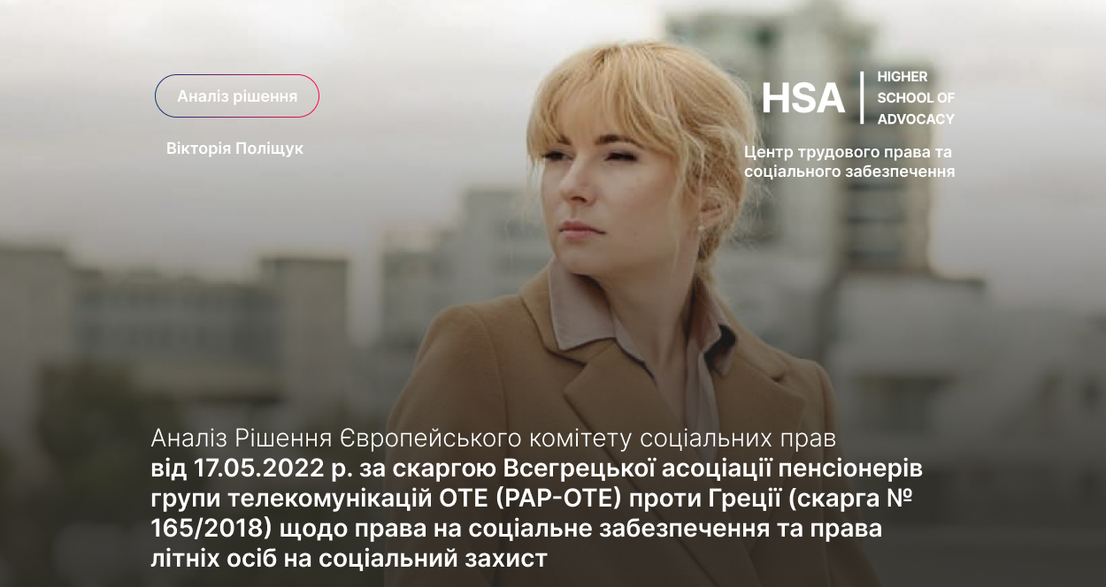 Аналіз Рішення Європейського комітету соціальних прав від 17.05.2022 р. за скаргою Всегрецької асоціації пенсіонерів групи телекомунікацій OTE (PAP-OTE) проти Греції (скарга № 165/2018) щодо права на соціальне забезпечення та права літніх осіб на соціальний захист