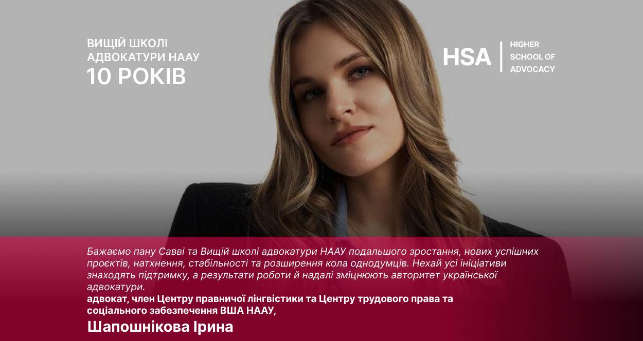 Бажаємо пану Савві та Вищій школі адвокатури НААУ подальшого зростання, нових успішних проєктів, натхнення, стабільності та розширення кола однодумців. Нехай усі ініціативи знаходять підтримку, а результати роботи й надалі зміцнюють авторитет української адвокатури.