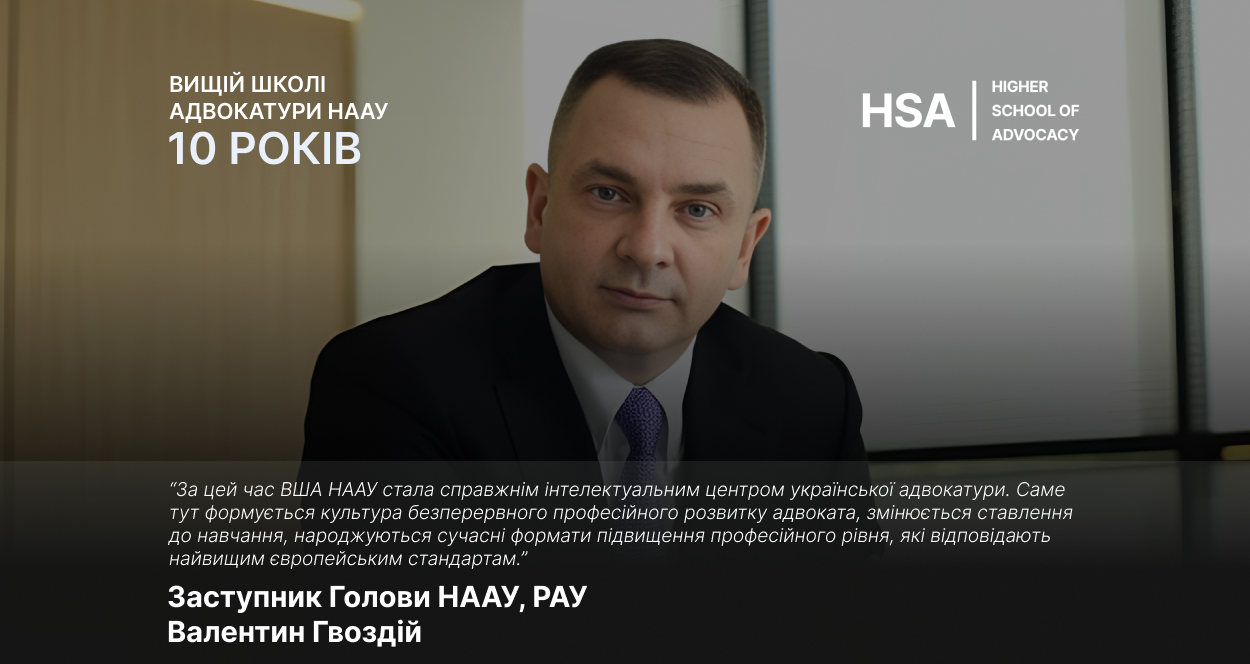 Сьогодні Вища школа адвокатури НААУ по праву є одним з найкращих прикладів організації професійної освіти адвокатів серед міжнародної адвокатської спільноти. Її модель – це зразок поєднання самоврядності, академічної свободи, практичної орієнтованості та відкритості до міжнародної співпраці. Ми по-справжньому пишаємося тим, що українська адвокатура не лише переймає європейський досвід, а й сама формує сучасні стандарти безперервної підвищення професійного рівня адвокатів.