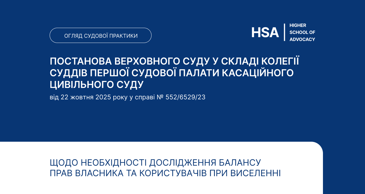 Відмовляючи у задоволенні позову в частині виселення відповідачів, суди попередніх інстанцій здійснили аналіз спірних правовідносин з точку зору положень статті 47 Конституції України та статті 8 Конвенції, проте не надали оцінки доказам, наданих позивачем, не провели належного аналізу балансу інтересів сторін, не дослідили питання виселення відповідачів на предмет пропорційності переслідуваній меті їх виселення у світлі статті 8 Конвенції та статті 1 Першого протоколу до Конвенції, статті 41 Конституції України. Позивач, як власник квартири, яка є єдиним його житлом, також захищений вищевказаними гарантіями, оскільки так само як відповідачі має право на житло, на повагу до свого житла. З часу набуття права власності на квартиру позивач зареєстрований у ній, проживав та користувався квартирою до травня 2023 року.