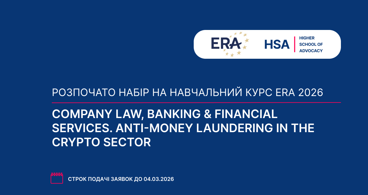 Набір на навчальний курс ERA 2026: Company Law, Banking & Financial Services. Anti-Money Laundering in the Crypto Sector