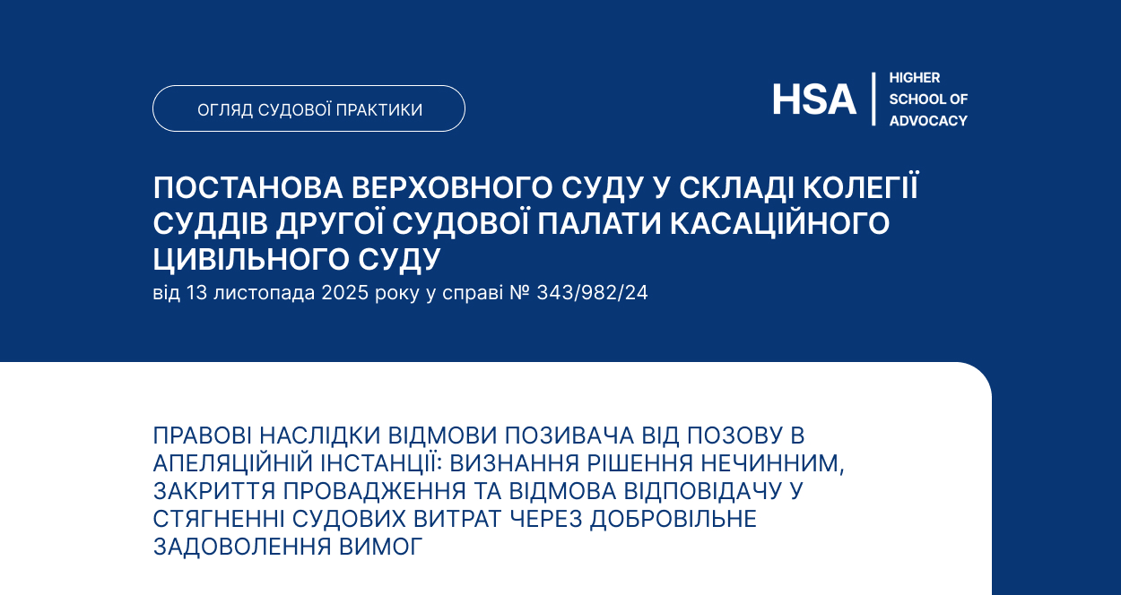 Огляд Вищою школою адвокатури НААУ постанови Верховного Суду у складі колегії суддів Другої судової палати Касаційного цивільного суду від 13 листопад...