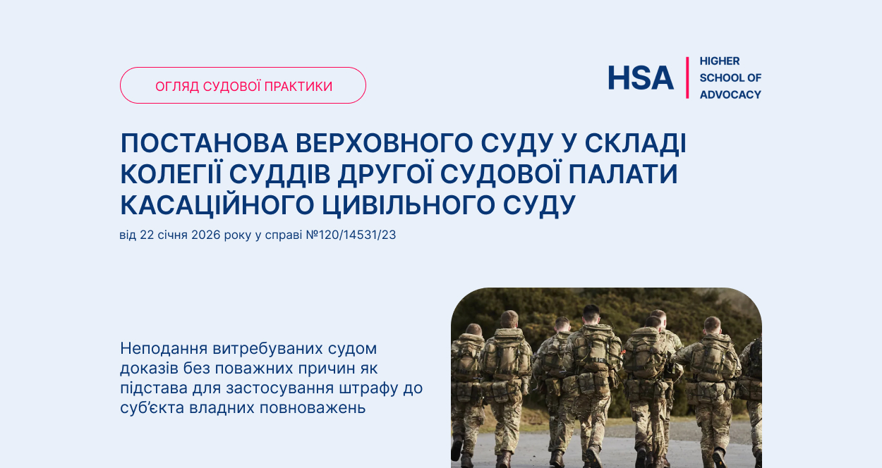 Огляд Вищою школою адвокатури НААУ Постанови Верховного Суду у складі колегії суддів Касаційного адміністративного суду від 22 січня 2026 року у справ...