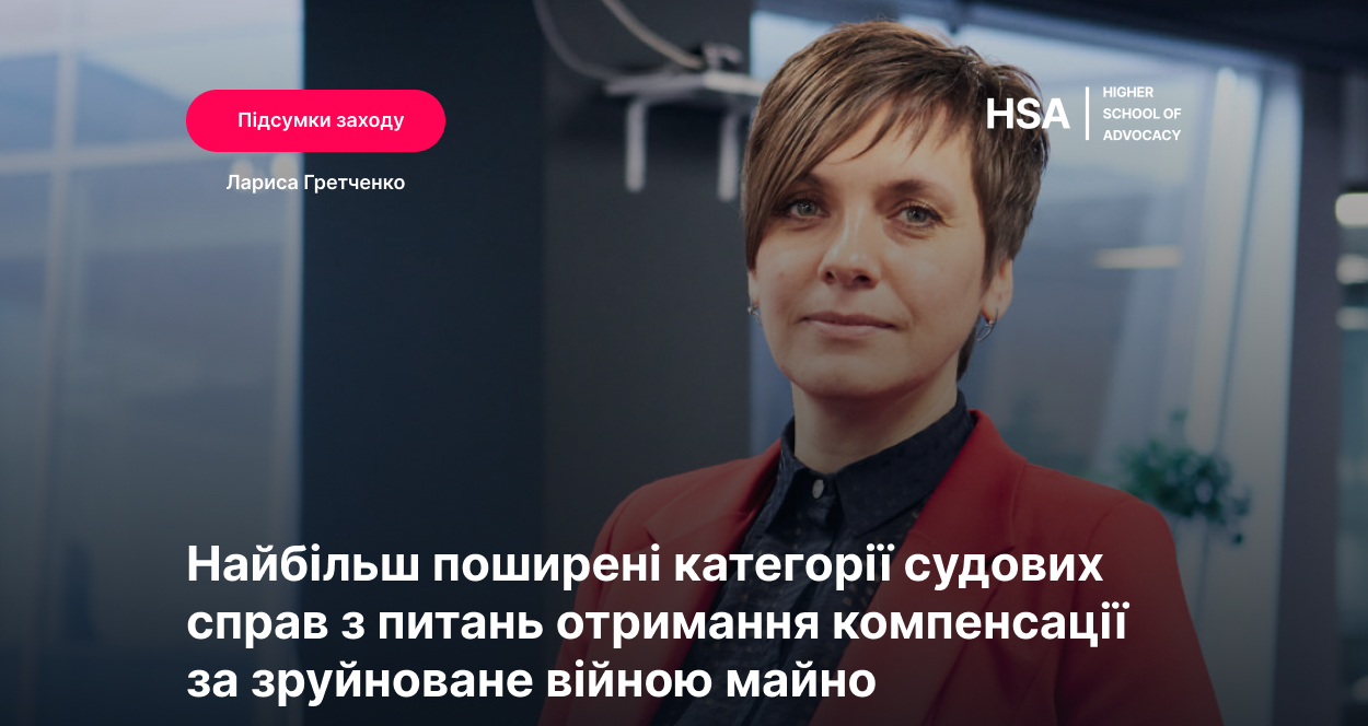 Про найбільш поширені категорії судових справ з питань отримання компенсації за зруйноване війною майно розповіла адвокат, медіатор, Голова Комітету Н...