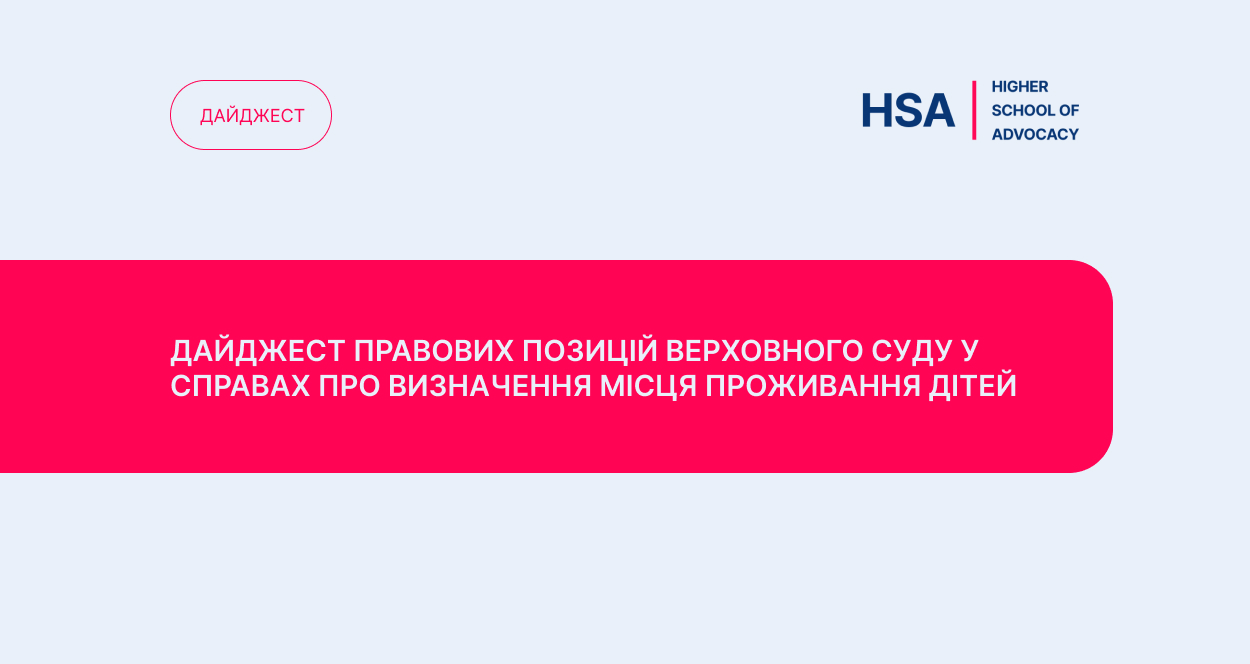 Дайджест правових позицій Верховного Суду у справах про визначення місця проживання дітей