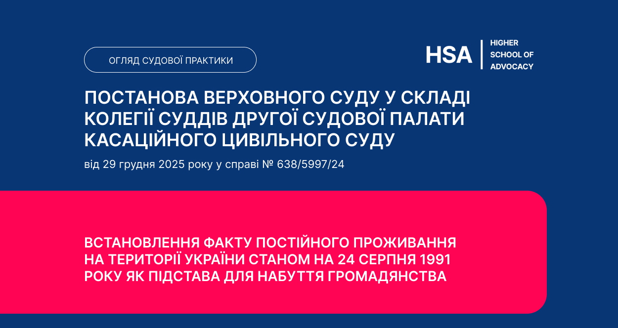 Огляд Вищою школою адвокатури НААУ постанови Верховного Суду у складі колегії суддів Другої судової палати Касаційного цивільного суду від 29 грудня 2...