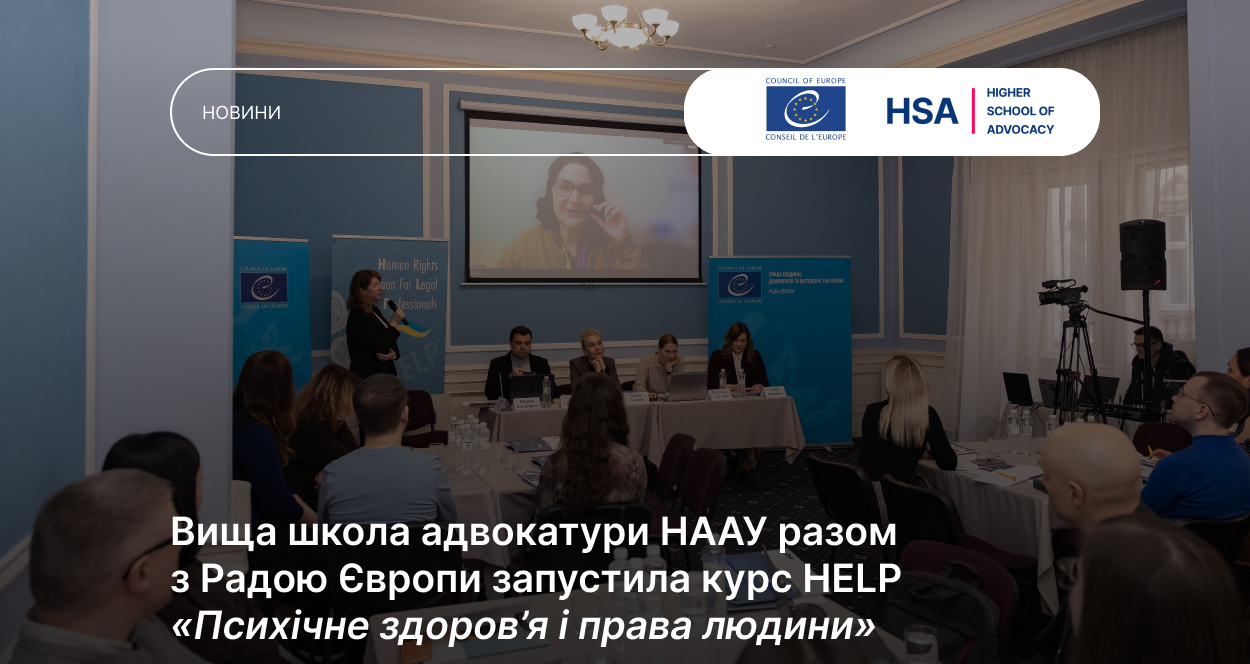 Вища школа адвокатури НААУ разом з Радою Європи запустила курс HELP «Психічне здоров’я і права людини»