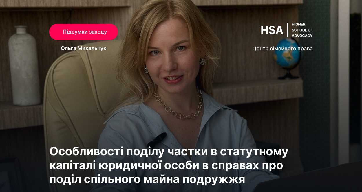 Про особливості поділу частки в статутному капіталі юридичної особи в справах про поділ спільного майна подружжя розповіла адвокат, член Центру сімей...