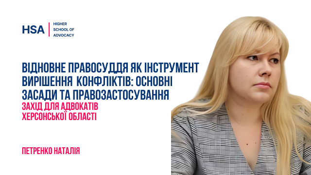 Відновне правосуддя як інструмент вирішення конфліктів: основні засади та правозастосування. Захід для адвокатів Херсонської області