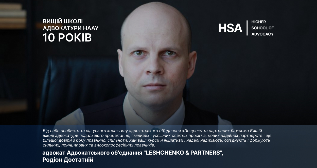 Привітання адвоката Родіона Достатнього з десятиріччям Вищої школи адвокатури НААУ