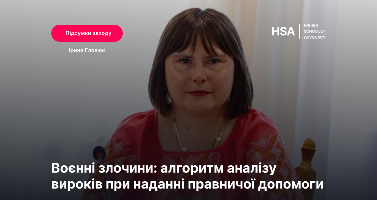 Лектор докладно проаналізувала разом з учасниками алгоритм аналізу вироків при наданні правничої допомоги щодо воєнних злочинів, а саме: