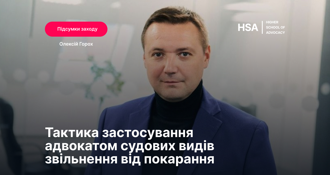 Про тактику застосування адвокатом судових видів звільнення від покарання розповів адвокат, доктор юридичних наук, доцент кафедри кримінального та кримінального процесуального права Національного університету “Києво-Могилянська академія”, заступник голови Комітету з кримінального права та процесу НААУ, член комісії з питань правової реформи при Президентові України Олексій Горох під час заходу з підвищення кваліфікації адвокатів, що відбувся у Вищій школі адвокатури НААУ.
