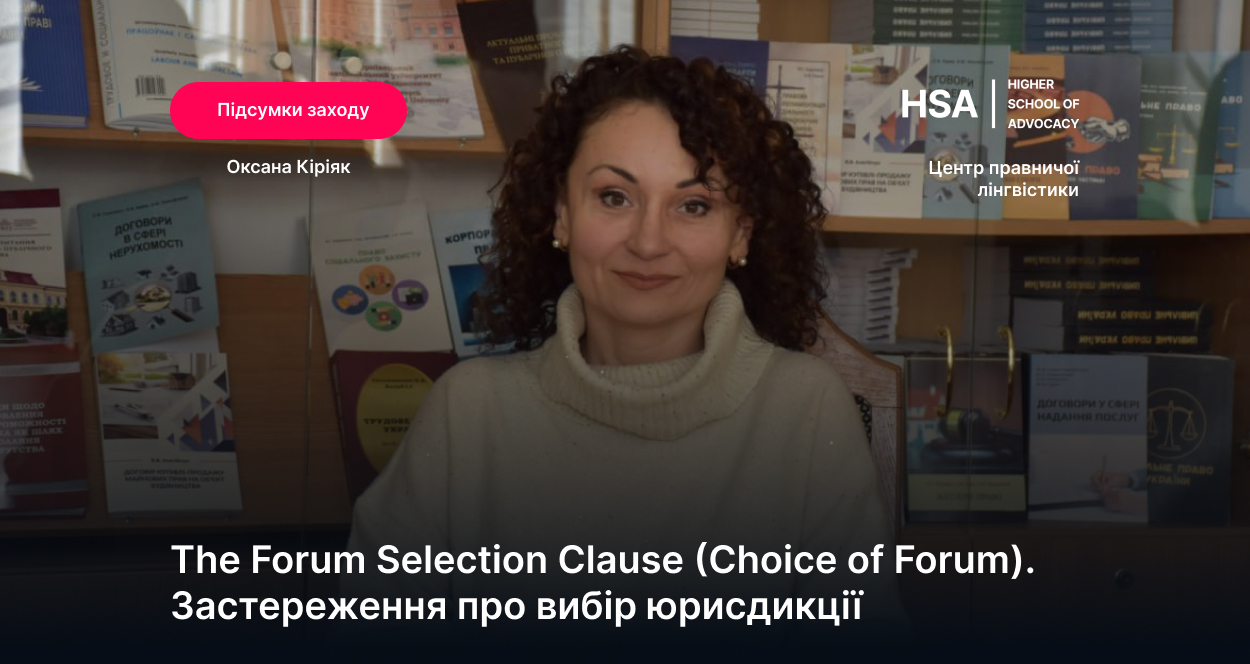 The Forum Selection Clause (Choice of Forum). Застереження про вибір юрисдикції