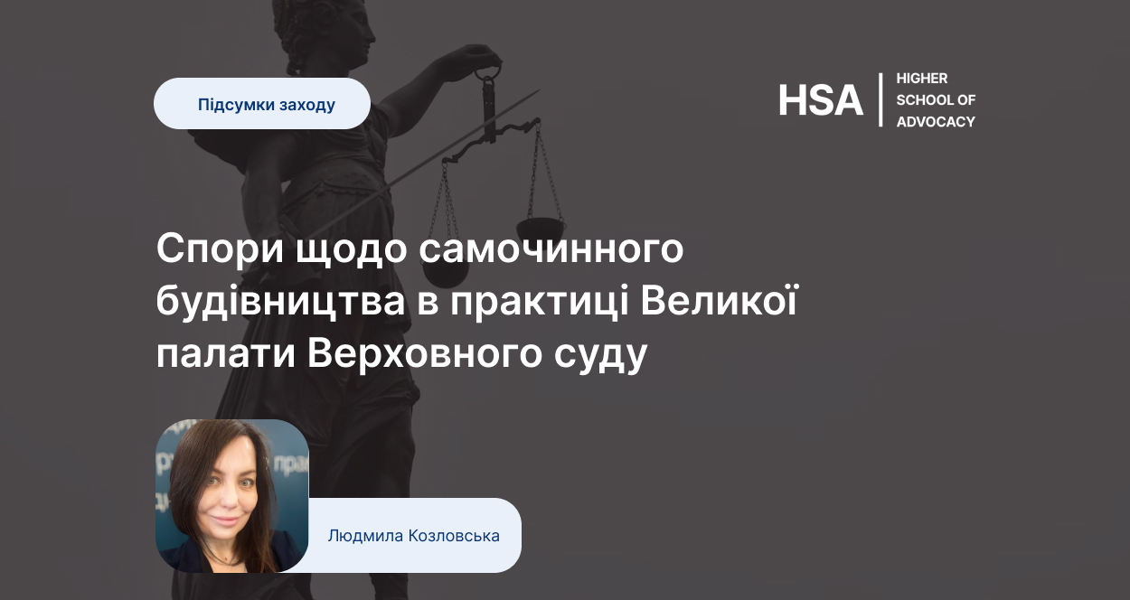 Лектор докладно проаналізувала разом з учасниками спори щодо самочинного будівництва в практиці Великої палати Верховного суду, а саме: