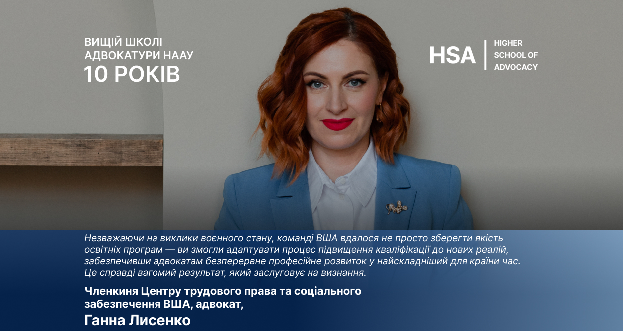 Вітання з Ювілеєм Вищої школи адвокатури НААУ від Ганни Лисенко