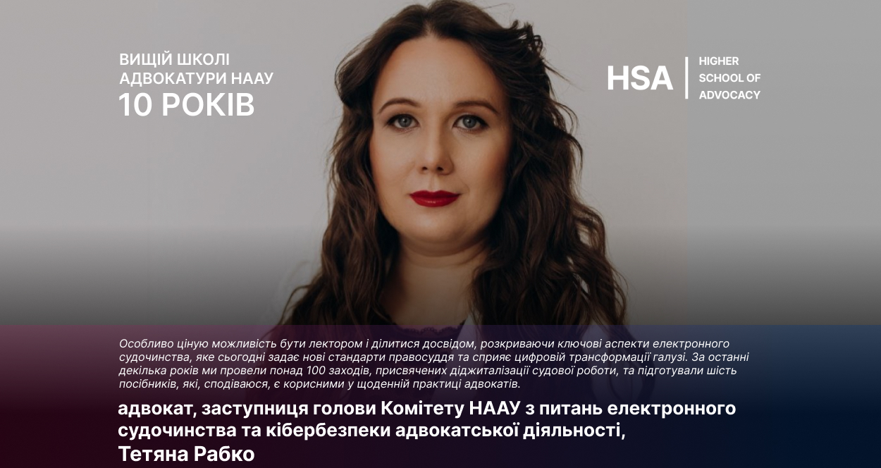 Тетяна Рабко адвокат, заступниця голови Комітету НААУ з питань електронного судочинства та кібербезпеки адвокатської діяльності