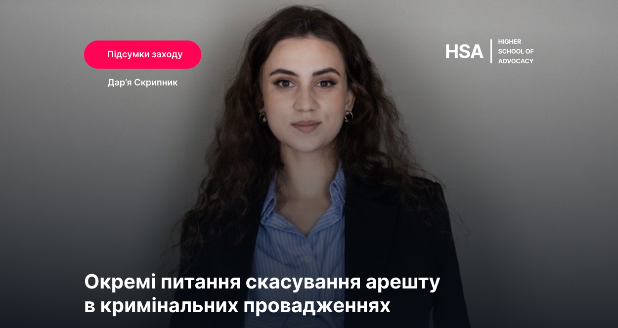 Лекторка докладно проаналізувала разом з учасниками окремі питання скасування арешту в кримінальних провадженнях, а саме: