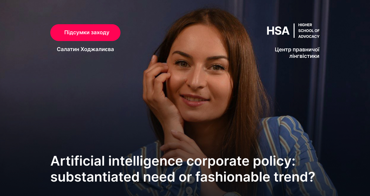 Лектор докладно проаналізувала разом з учасниками корпоративну політику щодо штучного інтелекту, а саме: